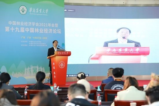 11月27-28日,中国林业经济学会2021年会暨第十九届中国林业经济论坛在华南农业大学召开。会议由中国林业经济学会、中国林业经济论坛主办,华南农业大学经济管理学院承办,以“推进中国林业和草原事业高质量发展”为主题,采用线上+线下的方式共享学术盛宴,来自国内外30余所高校的900余名专家、学者和师生线上参会,华南农业大学科学研究院、经管学院、林学与风景园林学院嘉宾、师生近100人线下参会。